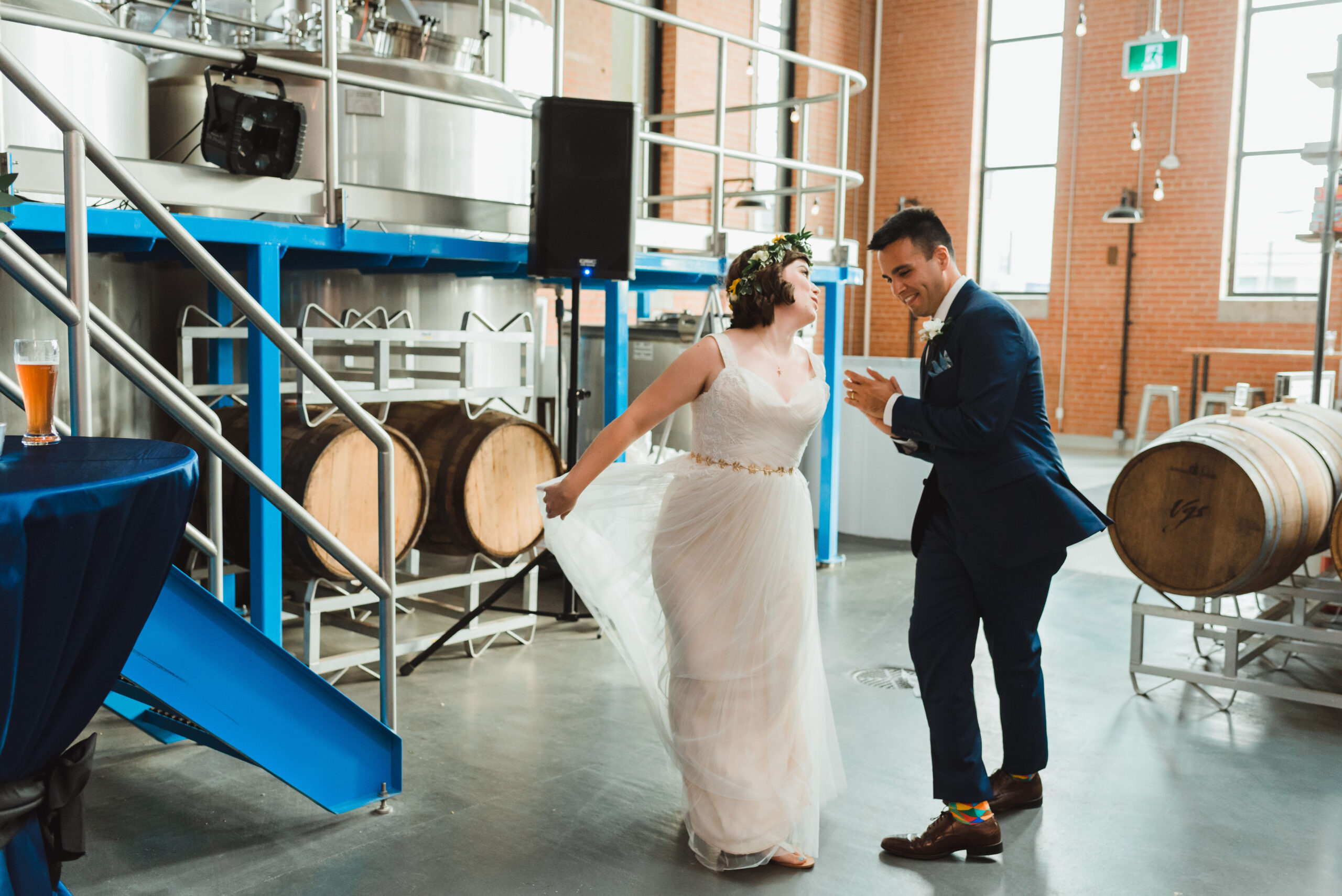 Like craft beer, having lots of options when looking at wedding venues is always a good thing! Here in Toronto your options for a hip wedding at a craft brewery is going to boil down to a few things. Are you looking to prioritize location, history of the building, the type of beer(s) they serve, or capacity? Many Torontonians opt for the classic: the roundhouse venue hosted by Steam Whistle brewing. Their beer hall has a capacity of up to 500 people. The beer hall also has the charm that comes with being the revitalized John street roundhouse where old locomotives were fixed up . Only drawbacks, they have one beer style and you won’t be exactly immersed in the fun of the brewing process. The roundhouse is located across the street from the Rogers Centre so you’ll be right downtown with lot’s of options for accommodations.